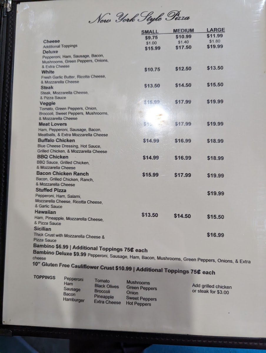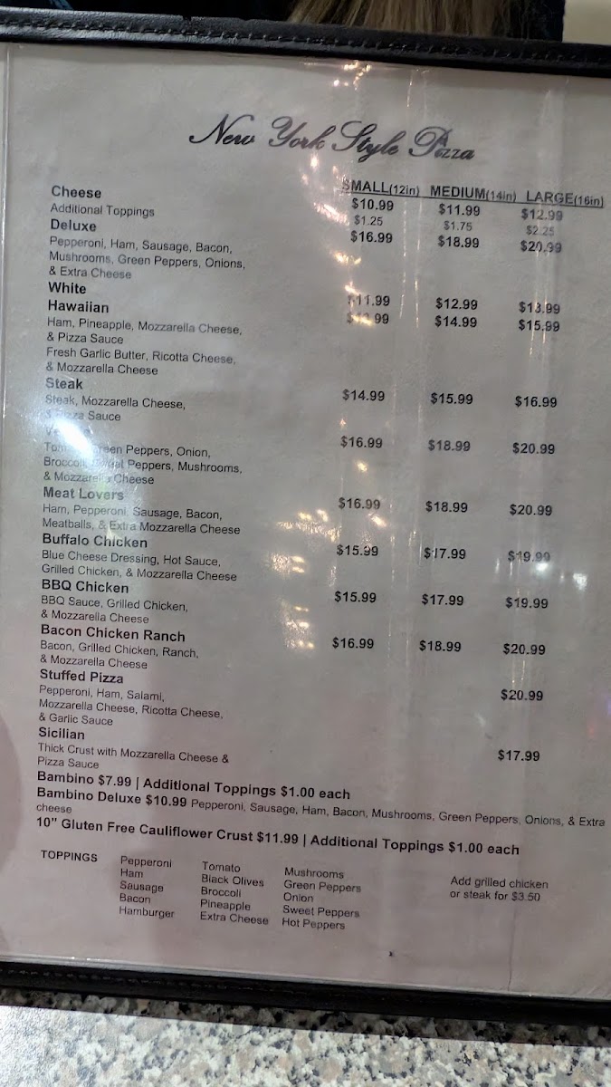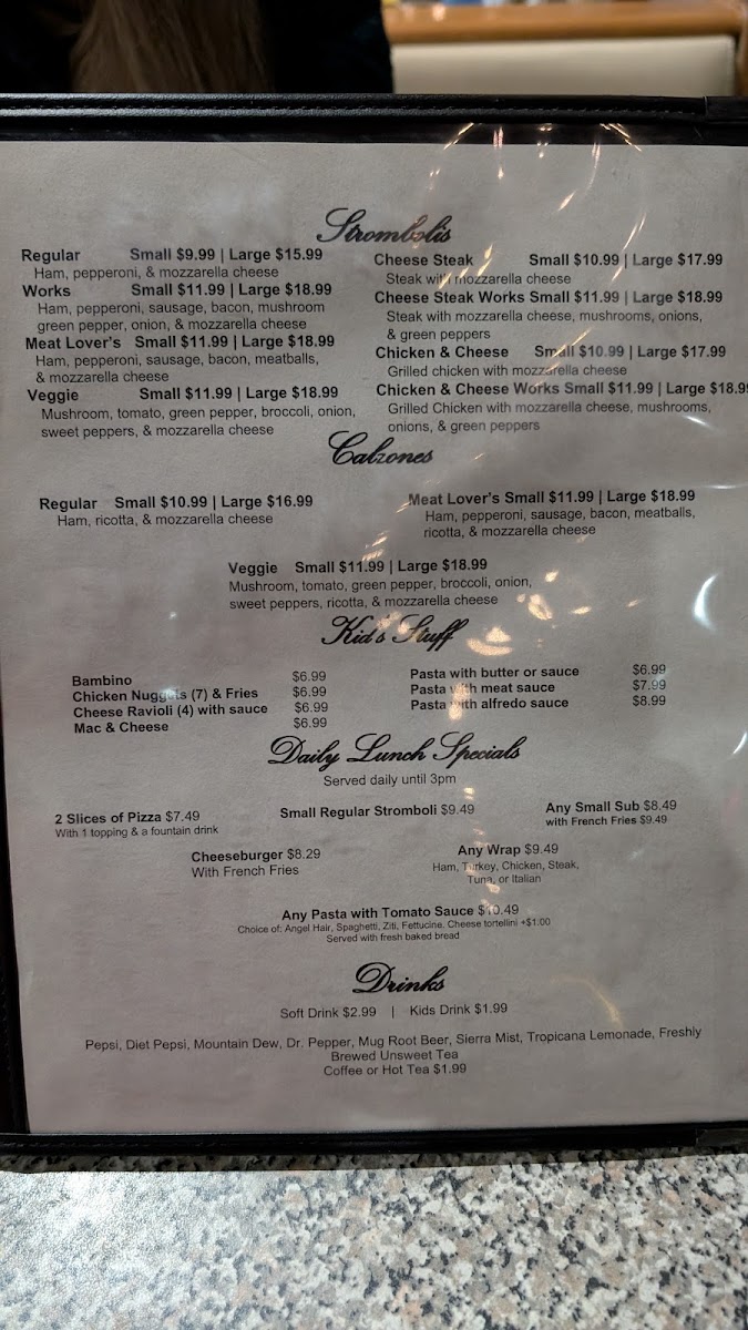You'll find classic Italian favorites alongside hearty subs and specialty pizzas. Highlights like the Special Steak and Cheese sub, Chicken Parmagiana sandwich, and their signature Stuffed Crust Pizza offer familiar, filling options that complement the friendly and inviting setting. Potato skins and quesadillas also add a casual twist to the overall dining experience.